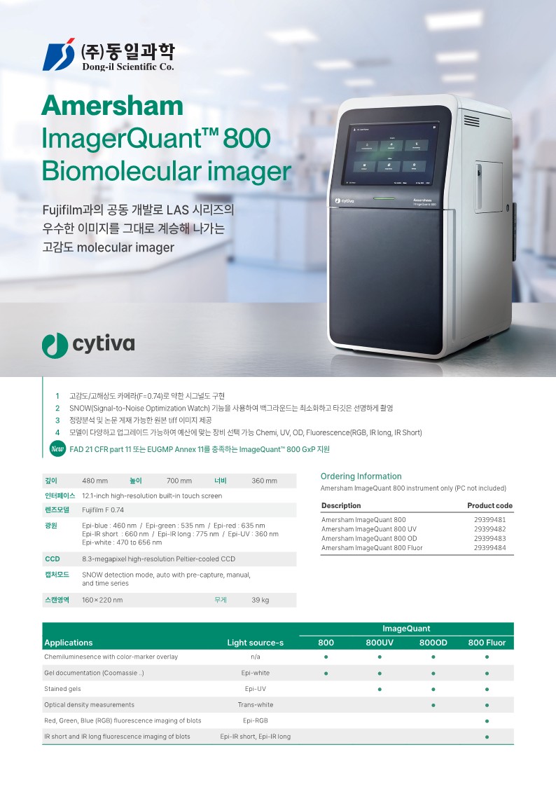 CytivaÀÇ Biomolecular CCD Imaging Àåºñ IQ800À» ÃÖ´ë 50% ÇÒÀÎÇÁ·Î¸ð¼Ç ¾È³»ÀÔ´Ï´Ù.Çà»çÀÏÁ¤ : 2026³â 3¿ù~8¿ù±îÁöÀû¿ë Á¦Ç°: Amersham ImagerQuant 800 (IQ800) Amersham ImagerQuant 800 UV (IQ800UV) Amersham ImagerQuant 800 OD (IQ800OD) Amersham ImagerQuant 800 FLUOR (IQ800FLUOR)