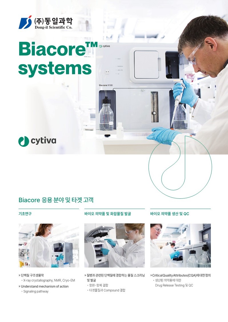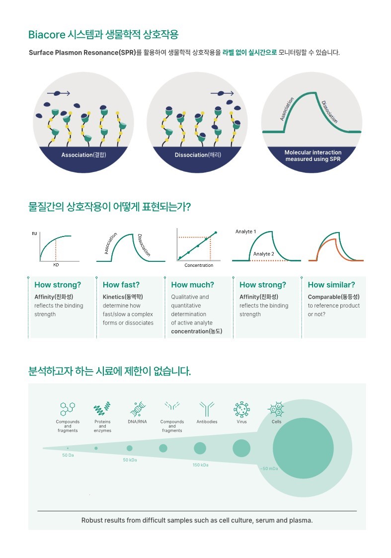 1980³â´ë¿¡ Ç¥¸é ÇöóÁî¸ó °ø¸í (SPR) ºÐ¾ß¿¡ ´ëÇÑ Çõ½ÅÀûÀÎ ¿¬±¸·Î ¼¼°è ÃÖÃÊÀÇ SPR ±â¹ÝÀÇ ¹ÙÀÌ¿À ¼¾¼, Biacore¢â°¡ Ãâ½ÃµÇ¾ú½À´Ï´Ù. ±× ÀÌÈÄ·Î ½ÎÀÌÆ¼¹Ù(Cytiva)ÀÇ Biacore¢â ±â¼úÀº ¼öõ °³ÀÇ °úÇÐ ¹®Çå¿¡ äÅÃµÇ¾î µ¿·á ¾÷°è¿¡¼ ÀÎÁ¤ ¹Þ°í ÀÖ½À´Ï´Ù. »ýü ºÐÀÚ°£ »óÈ£ ÀÛ¿ë(biomolecular interaction) ºÐ¼® ½Ã½ºÅÛÀ» ÅëÇØ ½Ç½Ã°£, ·¹À̺íÀÌ ¾ø´Â ŽÁö ¹× Ư¼º ºÐ¼®À» ¼öÇàÇÒ ¼ö ÀÖ½À´Ï´Ù.